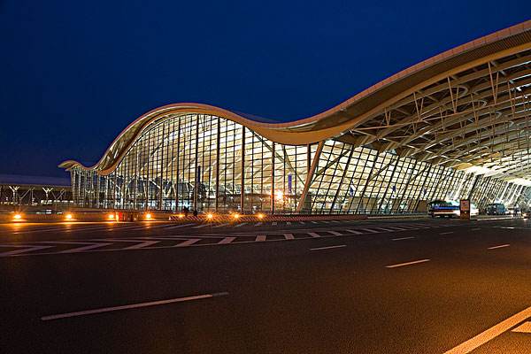 A skyscraper rises in a flat ground